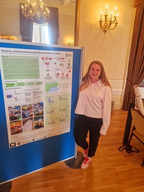 Charlotte Willoughby is a Wellcome Trust PhD candidate investigating how co-infection with malaria and schistosomiasis affects intestinal health. Although both parasites are highly prevalent in many regions, little is known about how a coinfection interacts within the gut — particularly concerning diarrhoea, enteropathy, parasite burden, transmission, and the host’s ability to mount an effective intestinal and immunological response. Charlotte’s project combines field studies in Uganda with murine models to address this knowledge gap, aiming to uncover the cellular and immunological mechanisms that drive intestinal pathology during single and co-infections.